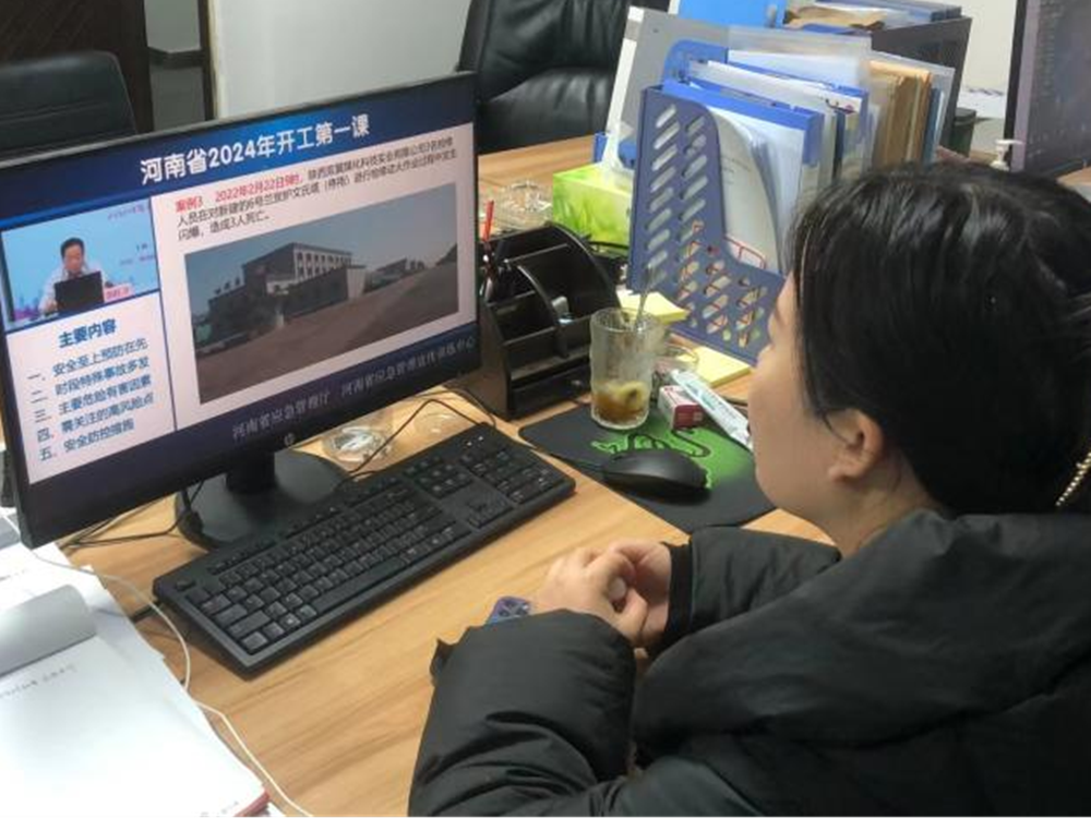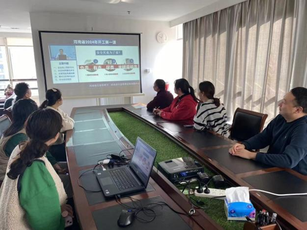 為認真貫徹習近平總書記關于安全生產重要指示精神,全面落實黨中央、國務院和省委、省政府決策部署,切實做好春節后復工復產企業的安全生產工作,有效杜絕準備不充分、員工精神狀態不佳、設備故障運行、安全管理不到位等問題引發的生產安全事故,確保復工復產安全, 全面恢復現場施工,保證項目施工進度,壓實項目、監理、總分包管理責任。建投集團2月28日上午按照省、市安委會及城發集團統一要求,組織控股公司、項目部留守人員及施工、監理單位共計129人統一收看“河南省 2024 年開工第一課講安全”專題講座直播和安全生產責任在肩安全生產警示教育片。